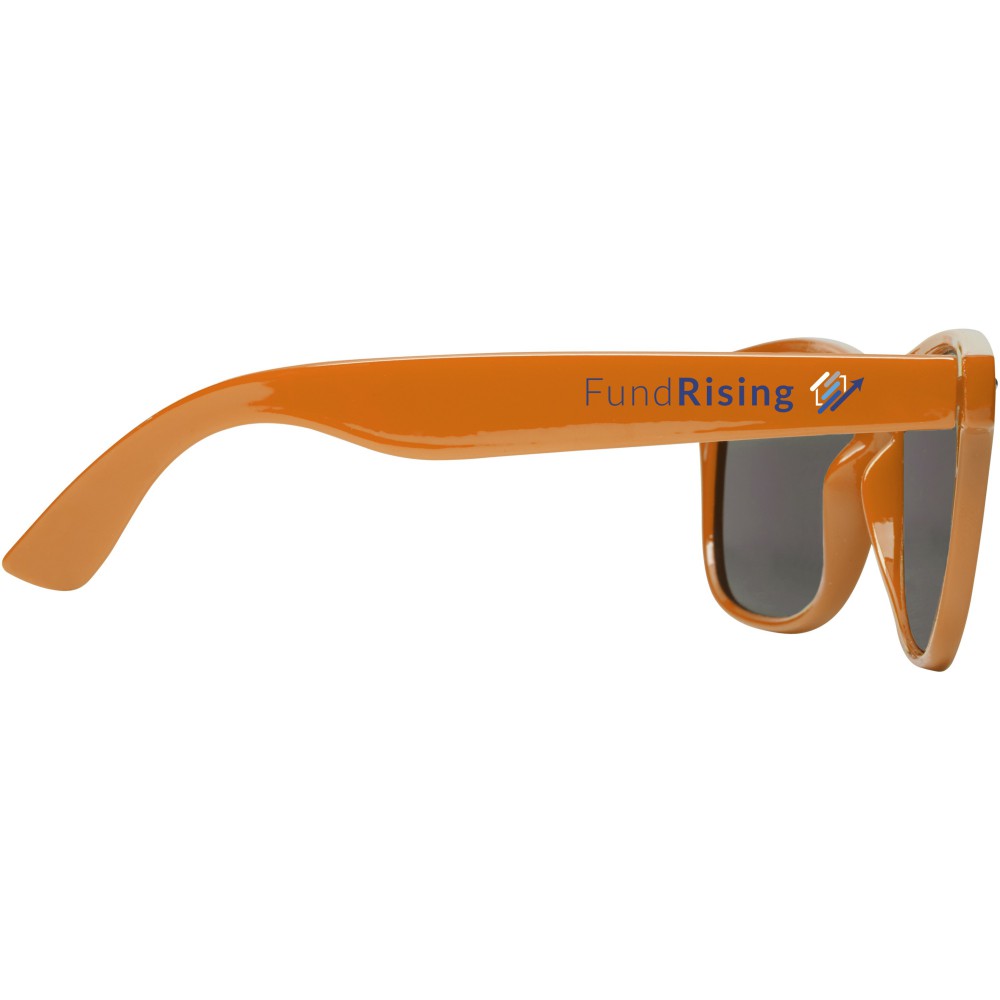 Ez a fenntartható, retro napszemüveg ideális promóciós ajándék nyári fesztiválokon, rendezvényeken vagy más napsütéses szabadtéri tevékenységek során. Az újrahasznosított PET műanyagnak köszönhetően a napszemüveg könnyű és kényelmes viselet. Ez a szemüveg megfelel az EN ISO 12312-1 szabványnak, UV400-as lencsékkel rendelkezik, amelyek 3. kategóriájúak, így tökéletes választás az erős napfény elleni védelemhez.