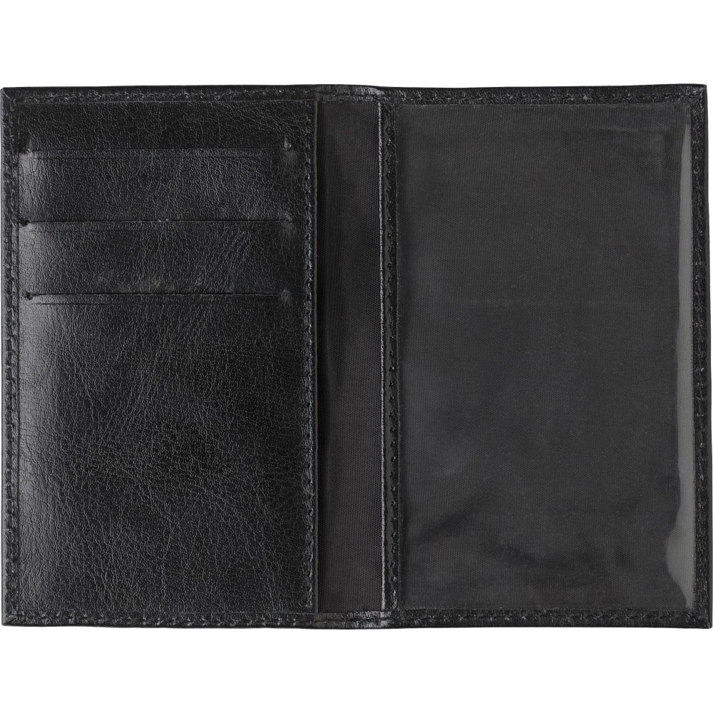 Hasított bőr tárca RFID védelemmel az adatlopás ellen. Bal oldalon 3 zseb és egy nagy ablakos rész a jobboldalon.