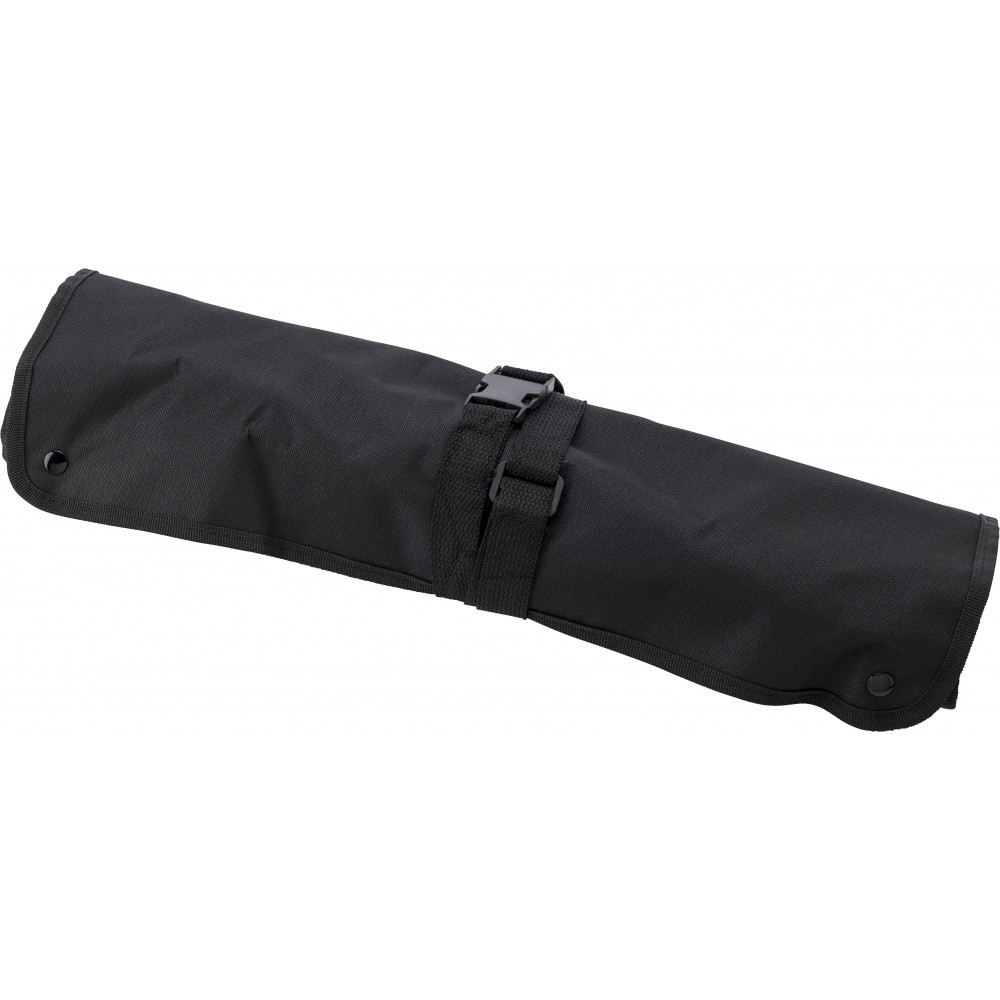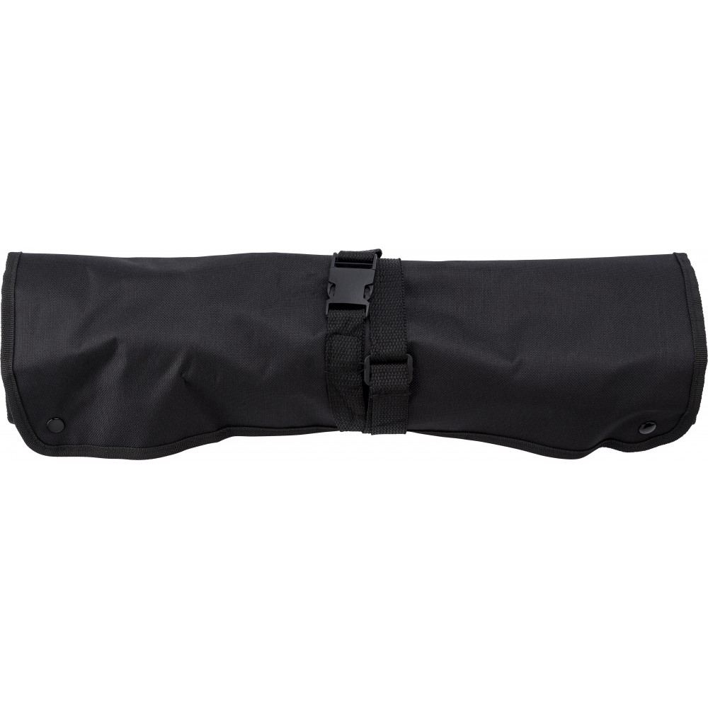 A zsebek tartalma: hússütő villa, kés, fogó, lapát, só- és borsszóró.