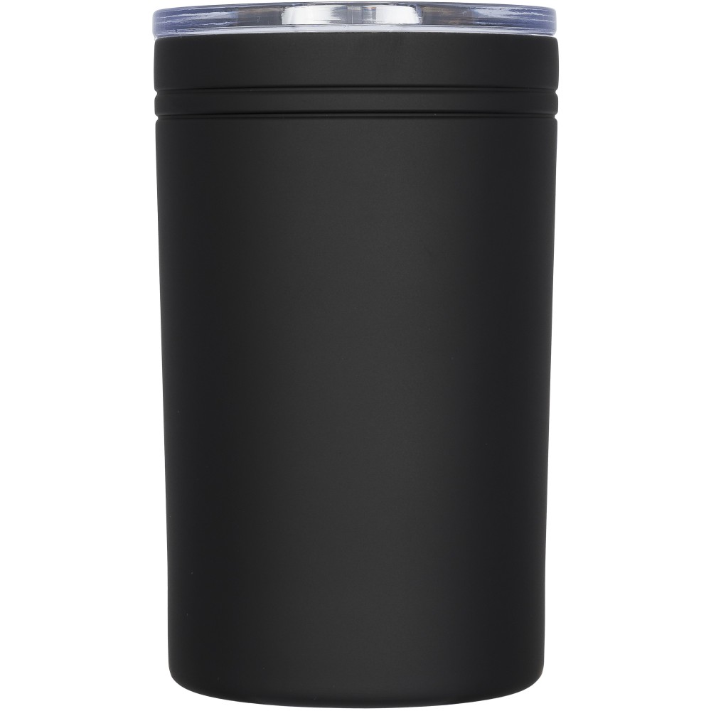Duplafalas, vákuumos kialakítás. Nem szivárgásmentes. Szénsavas italokkal nem használható. Mosogatógépben nem mosható és mikrohullámú sütőben történő melegítésre nem alkalmas. Átlátszó, rápattintható kupak, elcsúsztatható záródással. Űrtartalom: 330 ml.