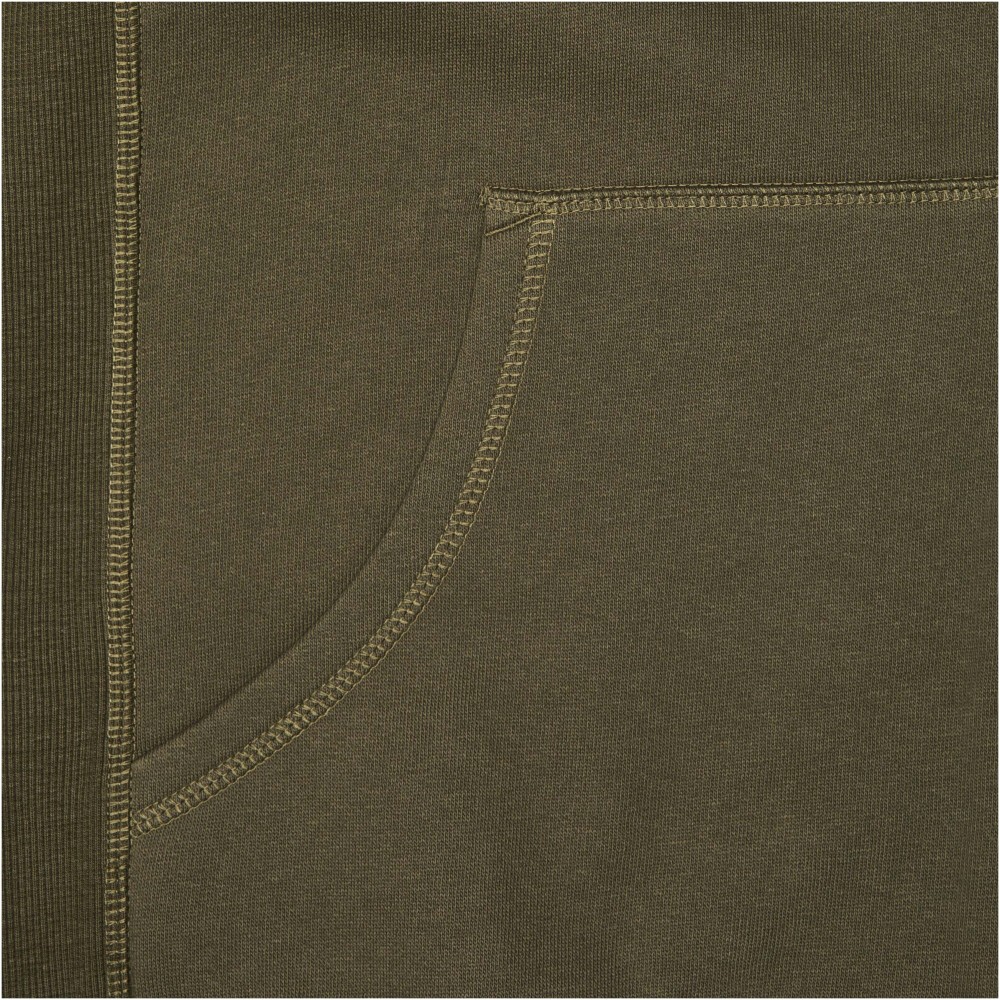 Normál szabásvonal. 2x2-es bordás oldalpanel, ujj- és derékpasszé. Kenguruzseb. Kapucniállító húzózsinór (kivéve gyerek modell). Bélelt kapucni. Saját anyagából készült félholdas betét a nyaknál. Szatén szegély a nyakvonalban. Kontrasztos színű halszálkamintás szalag a kapucniban. Hátul tónusos logónyomat. Antikolt fém fűzőlyuk-gyűrű gravírozott logóval. 80% pamut és 20% poliészter, kötött, belül bolyhozott. 300 g/m2.
