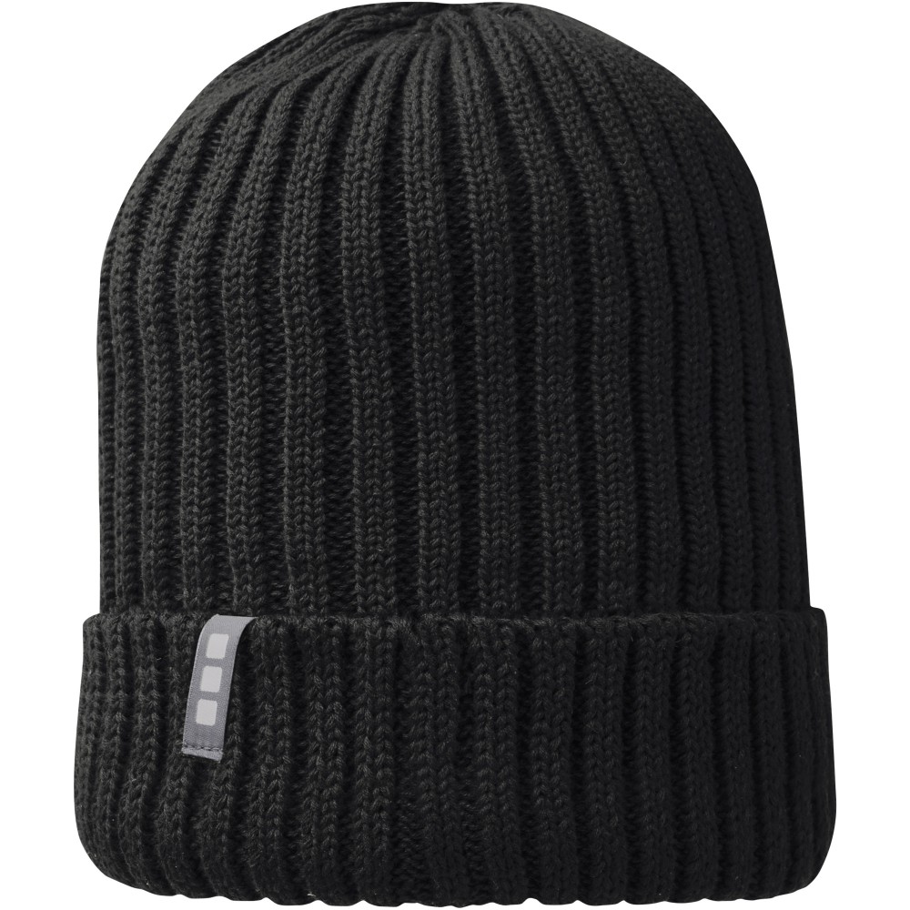 Egyrétegű sapka visszahajtókával, bevarrt márkajelzéssel. 2x2 bordás anyag. Organikus pamut.