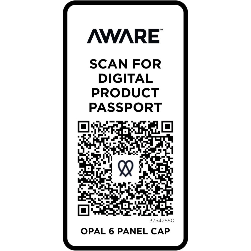 Az Opal 6 paneles sapka 70%-ban újrahasznosított pamutból és 30%-ban újrahasznosított poliészterből készült. Úgy tervezték, hogy 58 cm-es fejkörfogatnál kényelmesen illeszkedjen, a fémcsatos záródás pedig könnyű és biztonságos beállítást tesz lehetővé. A sapka Cyclo újrahasznosított szálakat tartalmaz, ahol előválogatott hulladékot használnak, amely meghatározza a fonal színét. Ezek a szálak nem csak a szűz erőforrások iránti igényt csökkentik, hanem a körkörös élet iránti elkötelezettséget is mutatják, megtestesítve a hulladékcsökkentés lényegét. Minden sapkához egy Aware nyomjelző is tartozik. Ez az innovatív funkció lehetővé teszi a felhasználók számára, hogy egy QR-kód segítségével nyomon követhessék a termék eredetét és útját, növelve az ellátási lánc átláthatóságát, és elősegítve a termék és a gyártási folyamat közötti szorosabb kapcsolatot.
