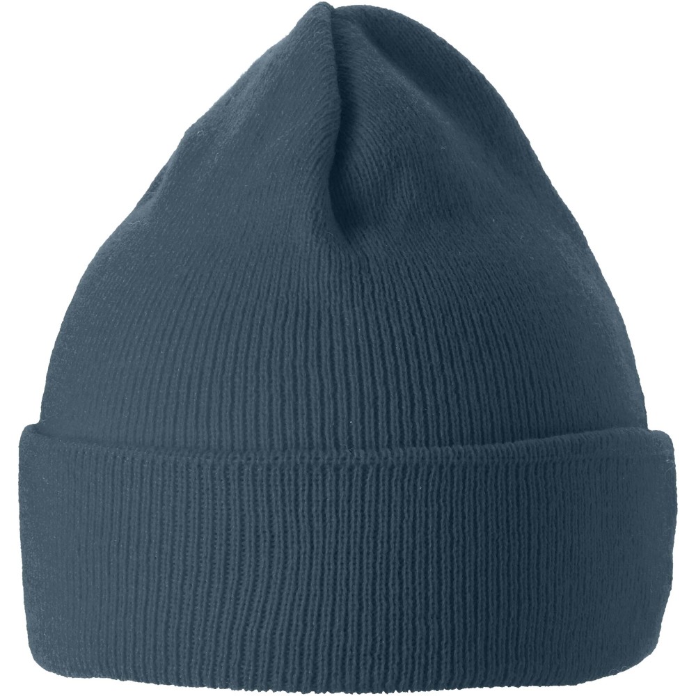 Egyrétegű sapka duplán felhajtott széllel. 1x1-es bordás kötésű, 100% akril.