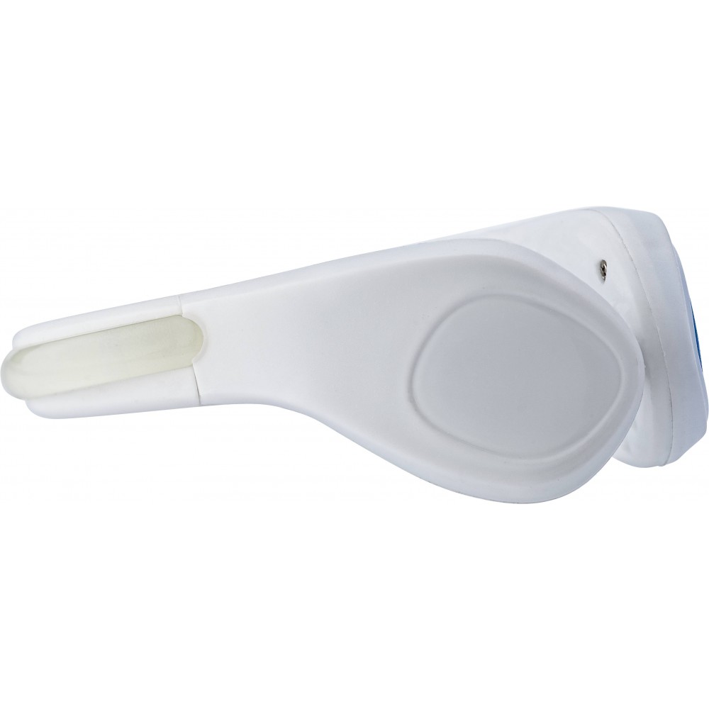 Bokapánt LED fénnyel, kétféle villogó móddal. Az elemet tartalmazza. ABS műanyag és szilikon.
