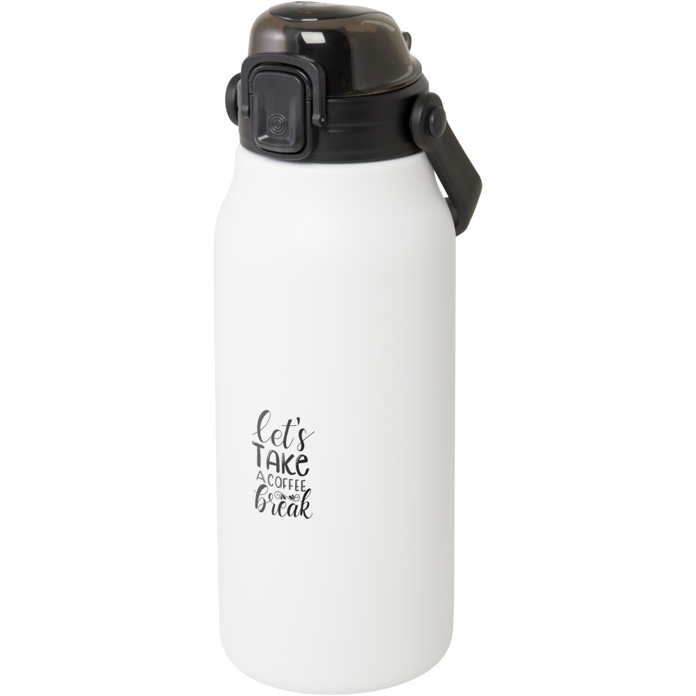 Ez a nagyméretű, RCS tanúsítvánnyal rendelkező, újrahasznosított rozsdamentes acél palack stílusosan hidratál egész nap. A réz vákuumszigetelés több órán át melegen vagy hidegen tartja az italokat, és az összecsukható fogantyúval könnyen hordozható. A palack szivárgásmentes, és gombos nyitómechanizmussal rendelkezik. Nagy űrtartalmú palack: 1600 ml. Újrahasznosított kartonból készült díszdobozban szállítjuk.