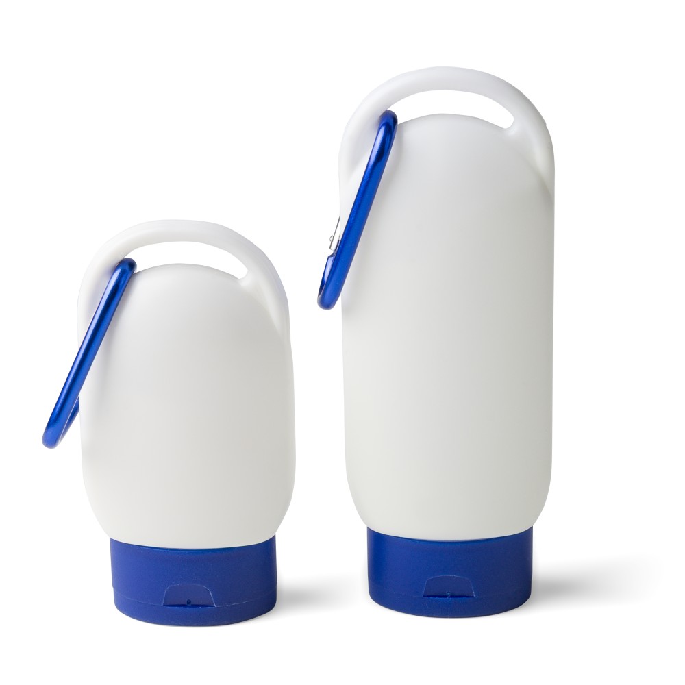 SPF 30 faktorszámú naptej színes kupakkal és a kupak színével harmonizáló karabinerrel. A hátoldalon az összetevőlista és a minőségmegőrzési idő szerepel. Szavatossági ideje 2 év. 30 ml.
