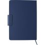 Karton ajándékkészlet. Tartalma: újrahasznosított alumínium csavaros golyóstoll kék tintával és újrahasznosított PU jegyzetfüzet. A jegyzetfüzet 80 lapos 70 g/m2-es vonalas papírral, és szalagos könyvjelzőt és fém mágneses zárat tartalmaz acélszürke gravírozott lappal. Mindkét termék újrahasznosított logóval van ellátva: dombornyomva a jegyzetfüzeten és gravírozva a tollon.