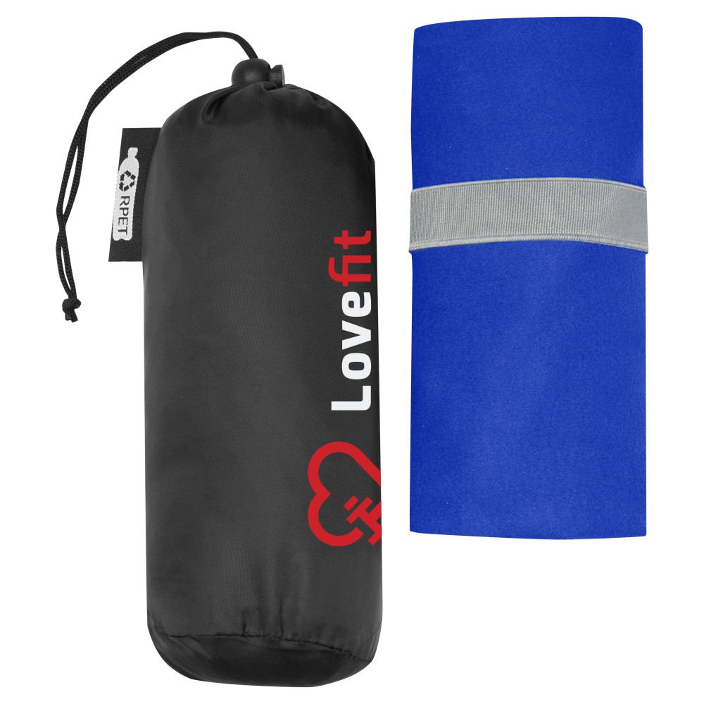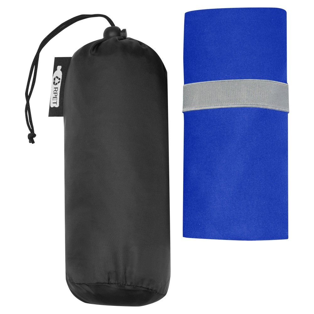 Ez a sporttörölköző nagyon jó nedvszívó, könnyű és gyorsan szárad. Ha a törölközőt összehajtjuk és gumiszalaggal rögzítjük, kis mérete miatt alkalmas edzőterembe, uszodába, vagy kempingezésre. A törölköző 130 x 80 cm méretű, 200 gr/m2-es újrahasznosított PET poliamidból készült, mosógépben 40°C-on mosható. Újrahasznosított PET műanyagból készült tároló tasakkal (20 x 8,5 cm) szállítjuk, amely remek helyet biztosít a logó nyomtatásához.
