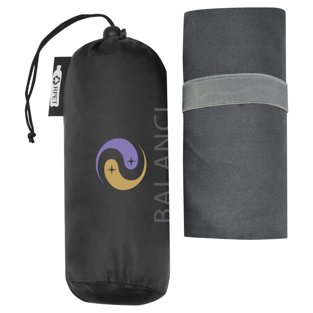 Ez a sporttörölköző nagyon jó nedvszívó, könnyű és gyorsan szárad. Ha a törölközőt összehajtjuk és gumiszalaggal rögzítjük, kis mérete miatt alkalmas edzőterembe, uszodába, vagy kempingezésre. A törölköző 130 x 80 cm méretű, 200 gr/m2-es újrahasznosított PET poliamidból készült, mosógépben 40°C-on mosható. Újrahasznosított PET műanyagból készült tároló tasakkal (20 x 8,5 cm) szállítjuk, amely remek helyet biztosít a logó nyomtatásához.