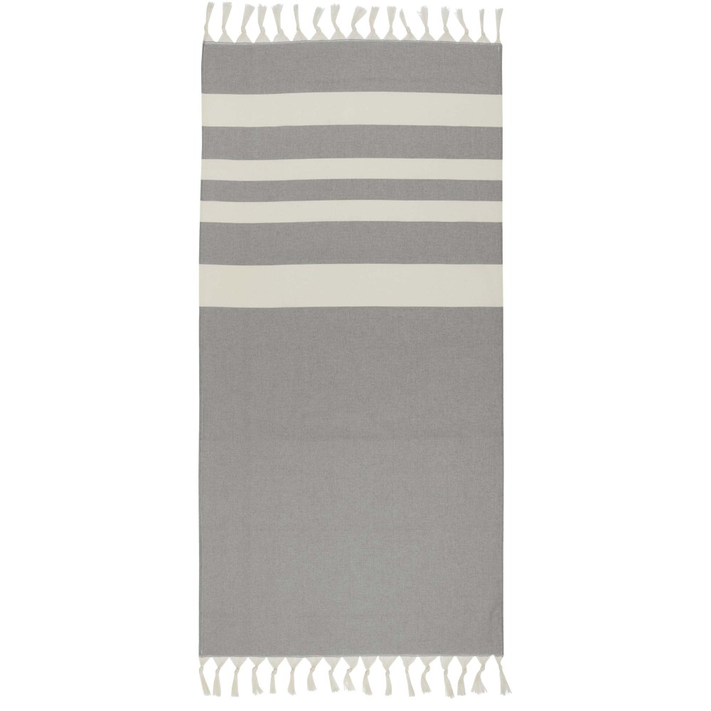 Az Anders hammam törölköző luxus kényelmet nyújt nagy méreteivel (147 x 75,5 cm), biztosítva a megfelelő takarást, akár a medence mellett pihensz, akár a tengerparton töltöd a napot. A törölköző mindkét végén elegáns bojtokkal van díszítve, anyaga 30% pamut, 35% GRS tanúsítvánnyal rendelkező újrahasznosított pamut és 35% GRS tanúsítvánnyal rendelkező újrahasznosított poliészter. 180 g/m2.