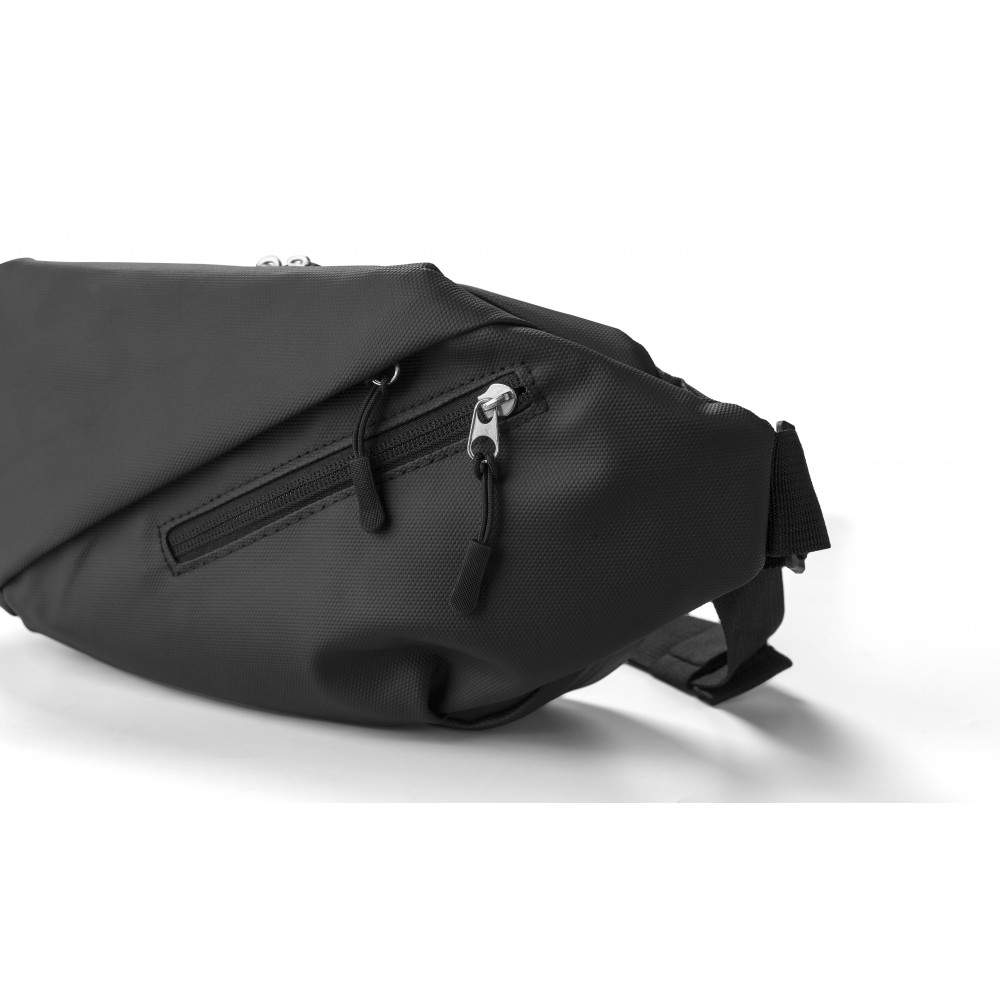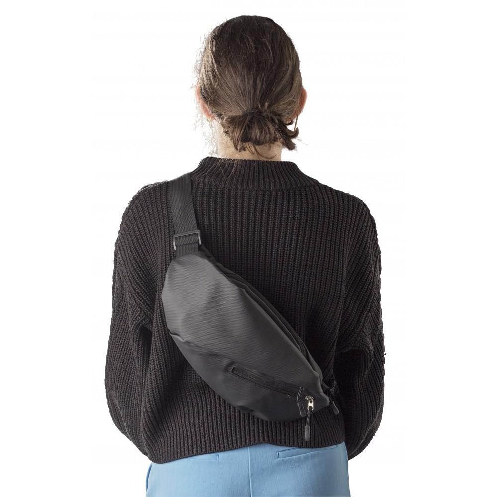 Vízlepergető kereszttáska állítható pánttal, elöl egy cipzáros zsebbel, belül több tartórekesszel.