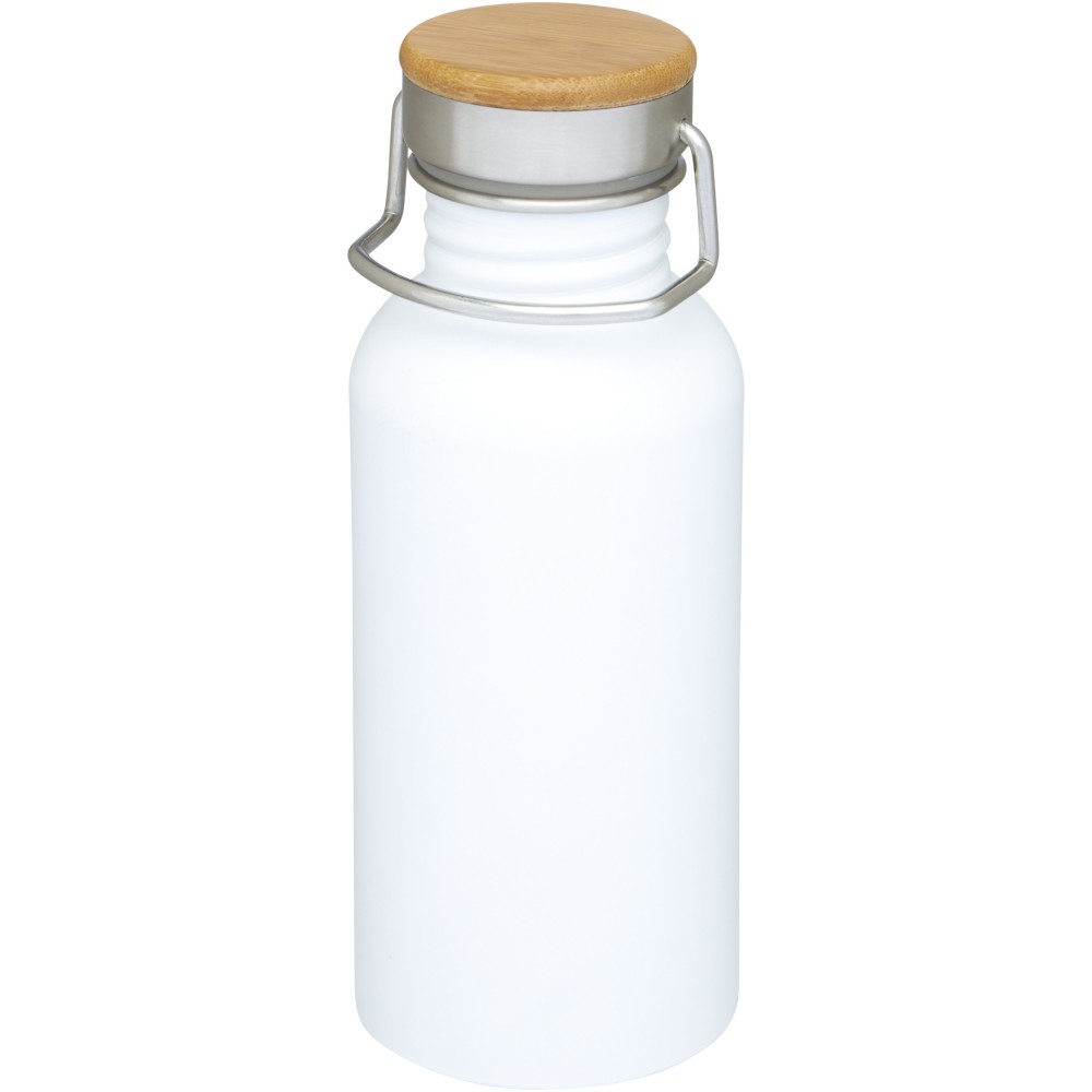 Egyfalú rozsdamentes acél palack csavaros tetővel. A fedélen bambusz rátét, valamint egy fül a könnyű hordozhatóságért. Szivárgásmentes. Szénsavas italokkal nem használható. Mosogatógépben nem mosható és mikrohullámú sütőben történő melegítésre nem alkalmas. Űrtartalom: 550 ml. Csomagolása Avenue díszdoboz. Rozsdamentes acél, bambusz.