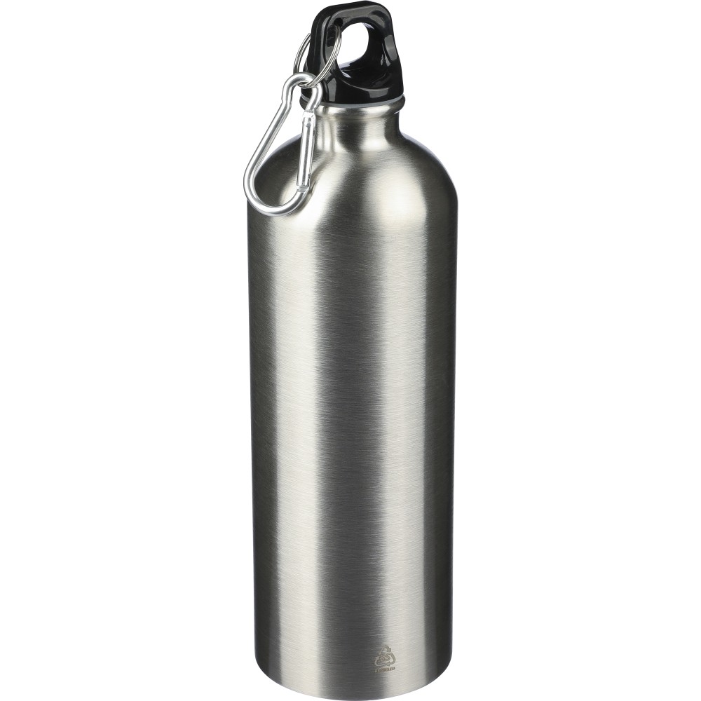 Újrahasznosított rozsdamentes acélból készült 750 ml-es szimplafalú kulacs PP kupakkal és alumínium karabinerrel. Az újrahasznosított anyagra utaló logó a palackra van gravírozva. Mosogatógépben nem tisztítható.